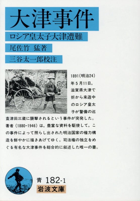 尾佐竹猛『大津事件 ロシア皇太子大津遭難』岩波文庫、読了。明治24年、来遊中のロシア皇太子が警備の巡査津田三蔵に襲撃された大津事件。皇族扱いの審理をせよと強要から司法権の独立を守る歴史的事件へと展開するが、本書はその全貌を豊富な資料を駆使し、明治国家の権力構造を鮮やかに描く一冊。