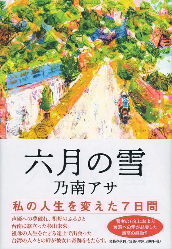 日韓併合は1910~1945年、そして日本の台湾統治は日清戦争後1895~1945年の50年間。その後、台湾は自由のない、世界一長い戒厳令が38年間も続き、台湾人が現在のような自由を手にしてからまだ30年しかたっていないと・・・。杉山朋子は1929年生まれ16歳まで台湾で過ごした。台湾には六月の雪という小さくて真っ白な花、咲くと一面雪が降ったように見える花があった。孫の未來は、祖母の思い出の地台湾を訪れ、日本が統治していた名残を写真に撮って祖母に送る。乃南アサの509頁の大作「六月の雪」2018.5発行。