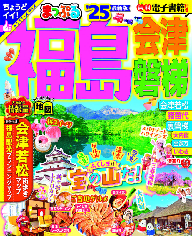 さまざまな魅力があふれる福島の今、行きたいおすすめの旅をお届け! レトロ感あふれる会津若松、蔵とラーメンの街・喜多方、円盤ぎょうざが人気の福島タウン、自然の絶景が楽しめる磐梯高原・猪苗代、日本最大級のボディスライダー「ビックアロハ」があるスパリゾートハワイアンズなどの人気観光地&スポットを詳しく紹介。大判付録は街歩きに便利な「会津若松街歩きMAP」と旅の計画に役立つ「福島プランニングMAP」。