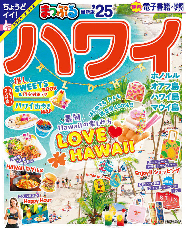 今行きたいハワイの最新情報満載!巻頭は、最旬のハワイグルメを特集します。パンケーキ、エッグベネディクト、カフェ、ハンバーガー、ポケ、ハッピーアワーなどローカルグルメは要CHECK!さらに、注目の”made in ハワイ”のコスメ、フード、ローカルブランドやアラモアナセンターやロイヤルハワイアンセンターなどショッピングモールから、ホールフーズやNEW OPENしたワイキキマーケットなどスーパーマーケットの情報も充実!さらに、絶対はずせないアクティビティ情報も掲載。新しいハワイを存分に満喫できる情報満載です。巻頭は、豪華2大冊子付録。「最旬SWEETS BOOK&満足度100%の円安対策テク」付き。