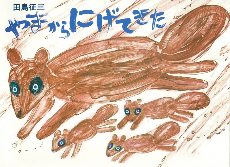 前から始まる物語のタイトルは『やまからにげてきた』。「たすけて」「たすけて」……山から動物や虫、鳥たちが逃げてきます。逃げようとしたものも、逃げおくれたものも、ゴミすてばの工事が始まって、みんなしんでしまいます。そこに持ちこまれてくるゴミの山は、どこからくるのか……。