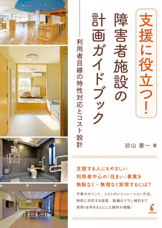 障害特性に対応した施設をつくるにあたり、事業コストをどうコントロールすればよいか。利用者中心の心地よい住まいを無理なく実現するポイントから、支援する人の働きやすさを両立する工夫まで。新築と改築・改修による実例18件の居室プランや設備コスト検討資料などを公開し、支援する事業者に役立つ計画のアイデアを紹介。